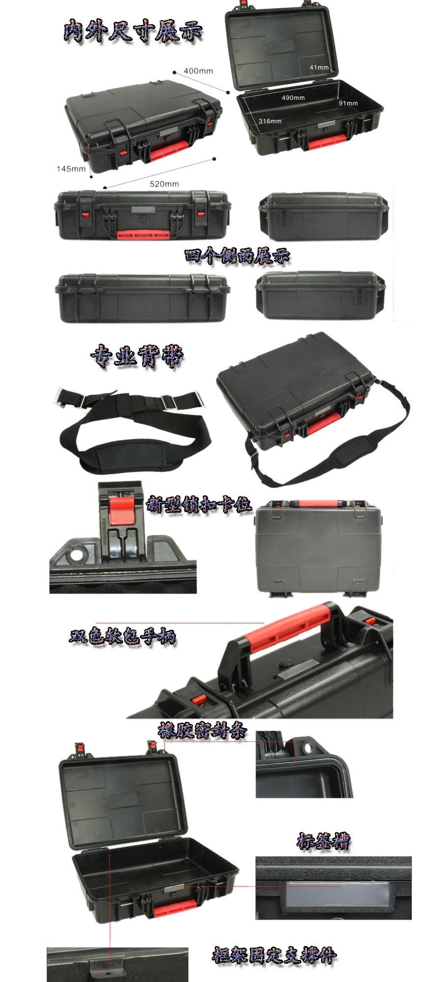 簡要說明:廣泛用于傳媒、公安、消防、軍隊、航空、戶外攝影、野外考察、科學探測等眾多領域的高端儀器、儀表。具有高強度、高抗壓沖擊、防潮、絕對密封、防塵、防水等特點。產(chǎn)品材質(zhì):ABS原料,箱體采用高抗沖擊的高分子聚合材料一體注塑成型,密封采用扁型彈性發(fā)泡密封橡膠條,確保防水氣密,所有較軸均采用不銹鋼材質(zhì)。