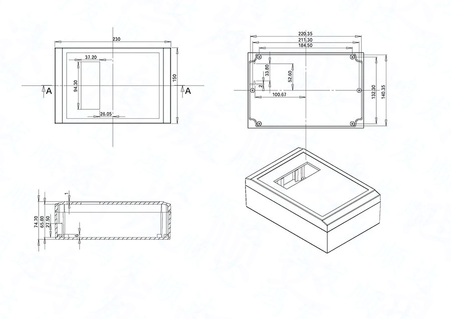 簡要說明:廣泛用于電子電路,將微弱的電流或電壓等信號放大儀器外殼。如手機信號放大器、電視信號放大器等。具有屏蔽性能良好、防腐蝕烤漆耐候性好、安裝簡易等特點。殼體內(nèi)部可加內(nèi)襯的鋁、鐵板,有防水、防腐蝕、防爆、屏蔽等功能。